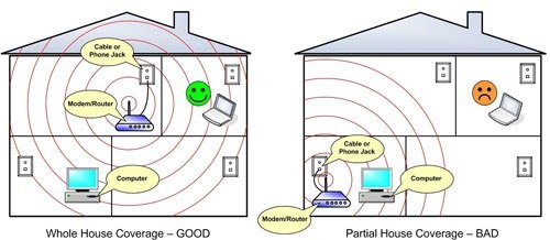 Các thiết bị phát sóng Wifi như Wireless Router, Access Point hay Modem ADSL có hỗ trợ kết nối mạng không dây nên được đặt vào giữa nhà. Bạn không nên đặt ở một góc nhà hay sát tường như thế sóng sẽ truyền một phần ra ngoài, và kết nối sẽ yếu dần ở đầu bên kia ngôi nhà.